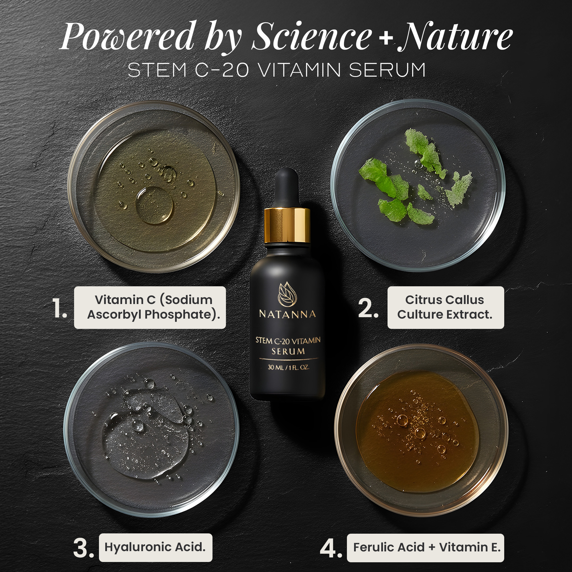 Natanna’s Advanced Vitamin C System is a precision formulated serum crafted to brighten, protect, and refine your skin day after day. Each drop combines science and intention to deliver a smoother, more luminous complexion that feels as radiant as it looks.
